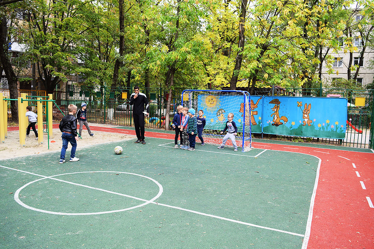 В нашем дошкольном учреждении созданы все условия для реализации проекта «Футбол — детям»: оборудован мини-стадион с футбольным полем, футбольными воротами, имеется форма для детей, эмблемы, футбольный инвентарь. Работа с детьми по реализации проекта проводится как дополнительная образовательная услуга.