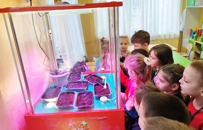 Воспитатель Ольга Ивановна Лисачук очень интересно проводит занятия с детьми. Она учит детей различать семена различных культур, знакомит детей с условиями, необходимыми для успешного развития растений, способами посева семян. Дети рассматривают, на что похожи семена, наблюдают за их ростом в теплице, а также фиксируют свои наблюдения в "Дневнике наблюдений". Каждый из детей непосредственно принимает участие в посадке семян и получает практические навыки в уходе за растениями.