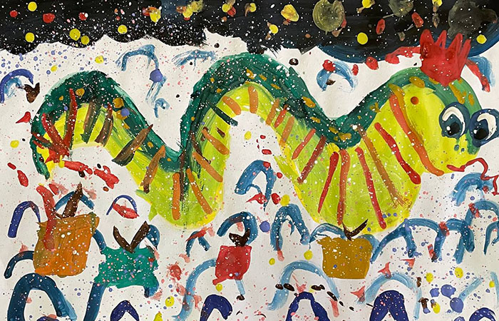 В изостудии мы с ребятами познакомились с этими традициями празднования и нарисовали символ 2025 года.