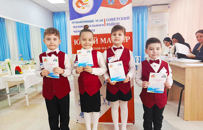 12 февраля воспитанница группы "Березка" МБДОУ № 256 Бедная Виктория и ее наставник Крупенкова Ирина Николаевна приняли участие в районном отборочном этапе муниципального чемпионата "Юный мастер – 2025" в компетенции "Ресторанный сервис". В ходе чемпионата Виктория выполняла различные задания 3-х модулей и успешно с ними справилась: рассказала о профессии, показала свои умения как празднично сервировать стол для гостей в соответствии с условиями задания, а также продемонстрировала "стиль обслуживания гостя заведения" и умение общения с ним.